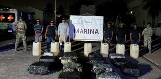 Una operación marítima coordinada por la Secretaría de Marina (Semar) permitió el aseguramiento de una embarcación con aproximadamente 650 kilogramos de presunta cocaína, así como la detención de seis personas, en aguas frente a las costas de Michoacán. El operativo se llevó a cabo a 61 millas náuticas (112.9 kilómetros) al suroeste del puerto de … Sigue leyendo 650 kilos de cocaína, 350 litros de combustible y seis detenidos en altamar: operación naval asegura embarcación frente a Michoacán