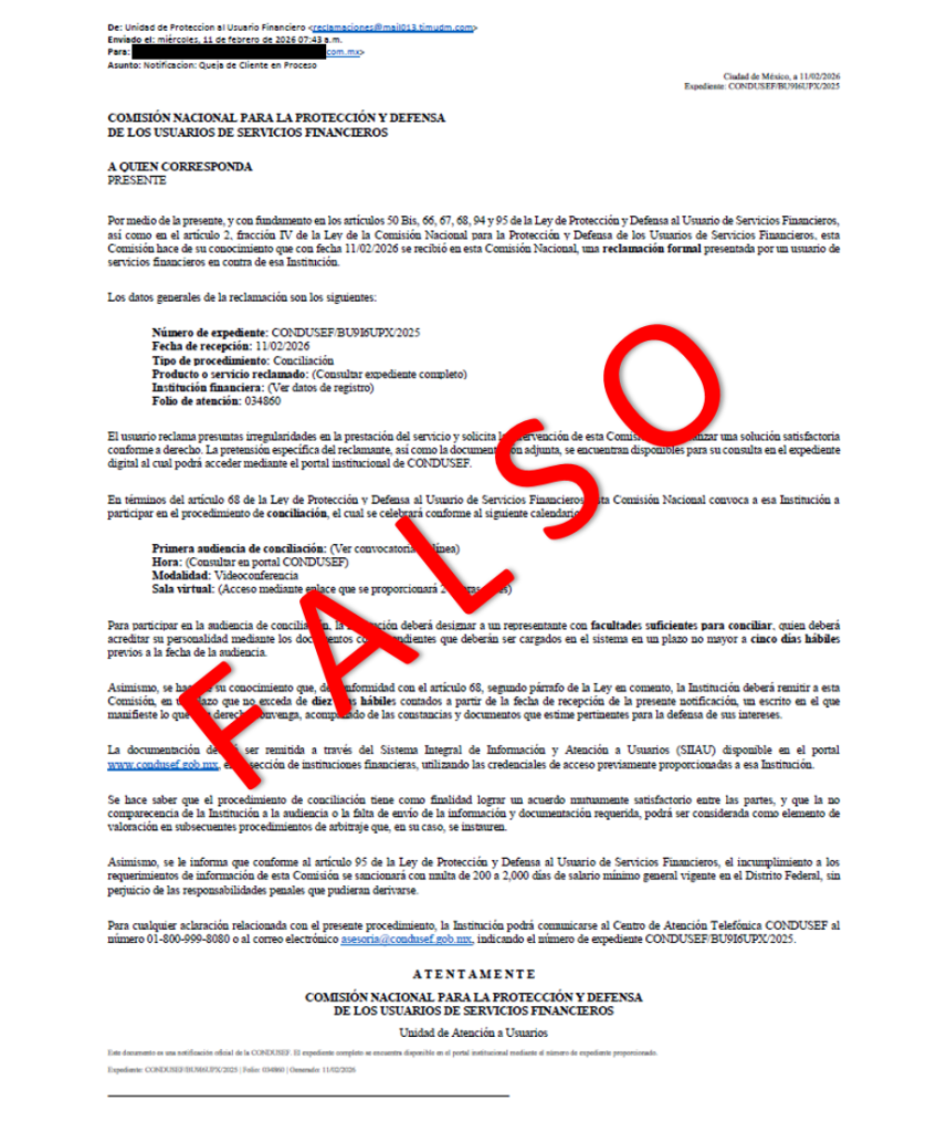 La Comisión Nacional para la Protección y Defensa de los Usuarios de Servicios Financieros (CONDUSEF) ha emitido una alerta urgente tras detectar una campaña de correos electrónicos fraudulentos. Los delincuentes están utilizando el nombre, los logotipos y el lenguaje oficial de la institución para engañar a los ciudadanos y obtener acceso a sus cuentas bancarias.