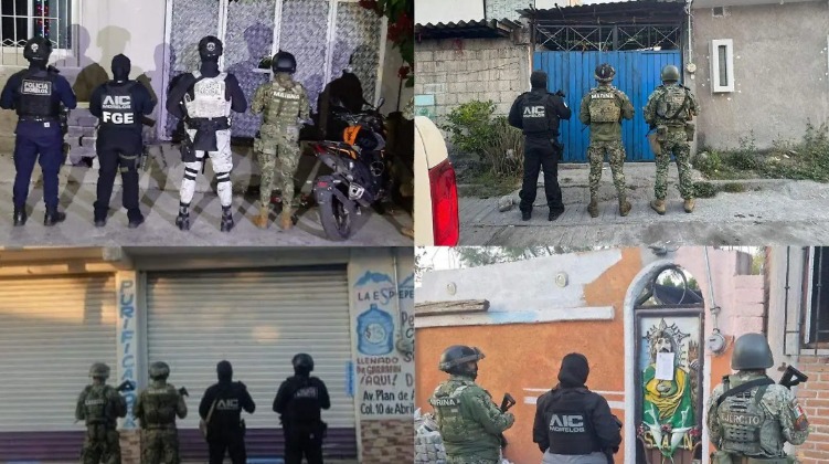 En Morelos, elementos federales y municipales realizaron cateos en siete inmuebles de Temixco, donde detuvieron a cinco personas, aseguraron 21 bolsas con distintas drogas y tres motocicletas.
