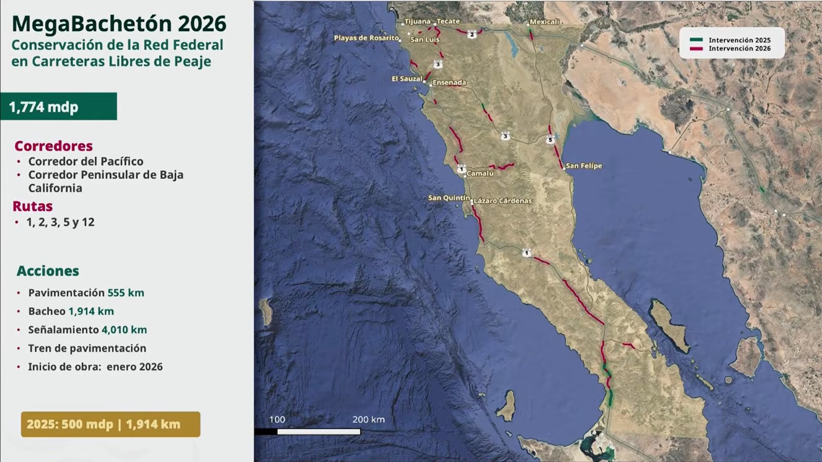 El titular de la dependencia explicó que los recursos se aplican en diversas obras estratégicas, entre las que destacan proyectos viales de gran escala. Detalló que 4 mil 300 millones de pesos se destinan al libramiento Tijuana–Ensenada, mientras que 14 mil millones de pesos corresponden a la construcción del viaducto elevado de Tijuana, obra cuya primera etapa será inaugurada este día y cuyo segundo tramo está programado para concluir en el mes de febrero.