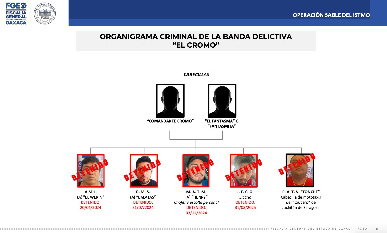 De acuerdo con las investigaciones de la Vicefiscalía General de la Zona Centro, “Koki” es uno de los principales operadores delictivos del grupo que se ha posicionado como generador de violencia en el Istmo de Tehuantepec, presuntamente ligado a delitos contra la salud, extorsión, privación ilegal de la libertad y portación de armas de fuego.