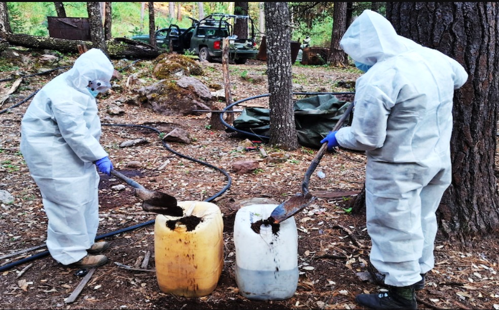 De acuerdo con el reporte oficial, en el área donde se localizó el material ilícito también fueron asegurados un reactor de síntesis orgánica y un destilador, utilizados para la producción de drogas sintéticas. Estas acciones fueron encabezadas por elementos del Ejército Mexicano, como parte de los trabajos contra la producción y tráfico de estupefacientes.