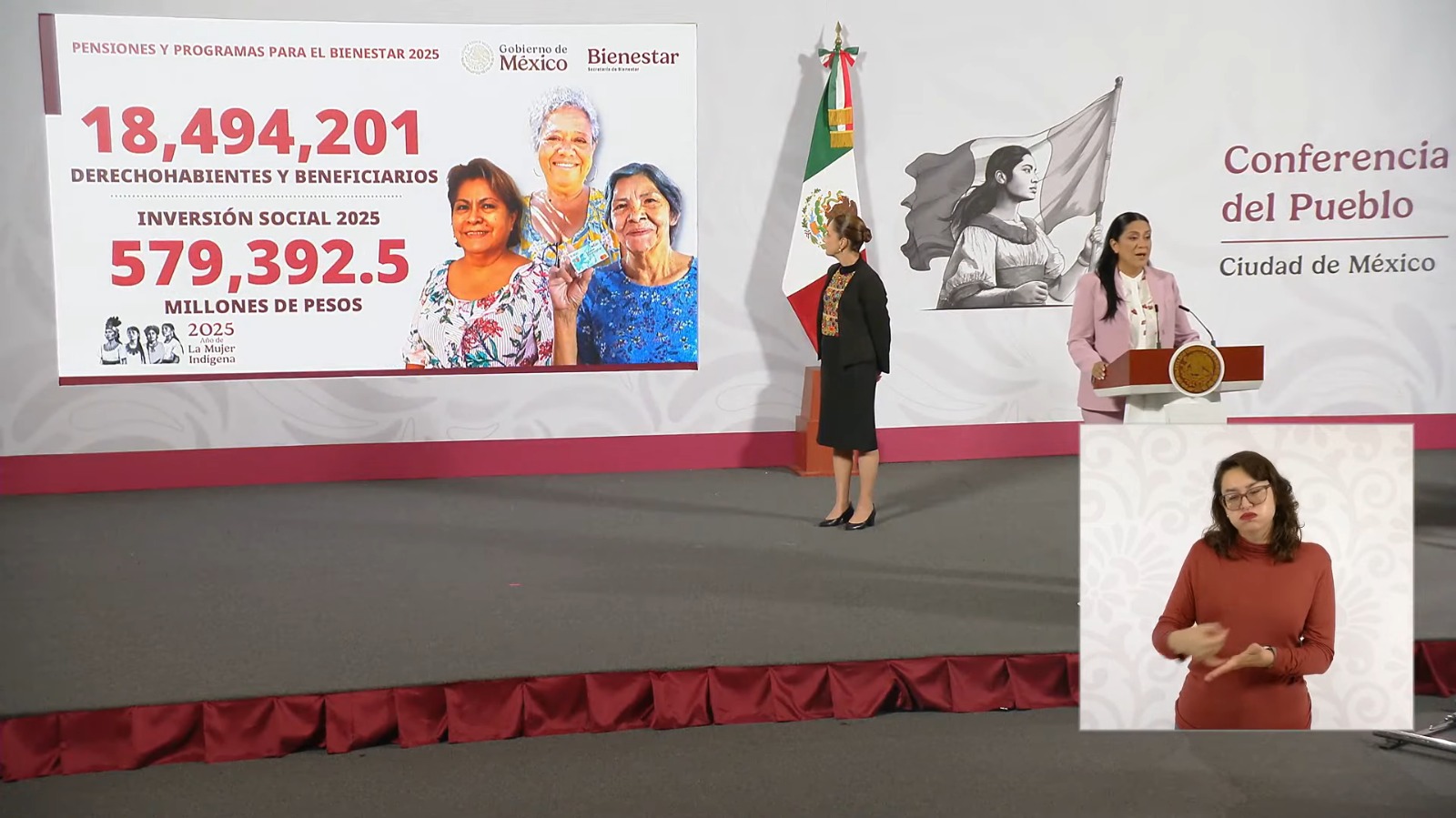 Respecto a la Pensión Mujeres Bienestar, recordó que la entrega finalizó la semana pasada para quienes concluyeron su registro, en un esquema ya universal para mujeres de 60 a 64 años, con una inversión anual de 23,662 millones de pesos.