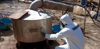 Autoridades federales localizaron, desmantelaron y destruyeron laboratorios clandestinos usados para la producción de drogas sintéticas en Durango, Sinaloa y Michoacán, como parte de acciones coordinadas para frenar la fabricación y distribución de estas sustancias. En dos operativos distintos, elementos de la Secretaría de Marina (Armada de México), en coordinación con la SSPC, FGR, Defensa, Guardia … Sigue leyendo “Cocinas del narco” apagadas: destruyen laboratorios en 3 estados y frenan más de 700 kilos de metanfetamina