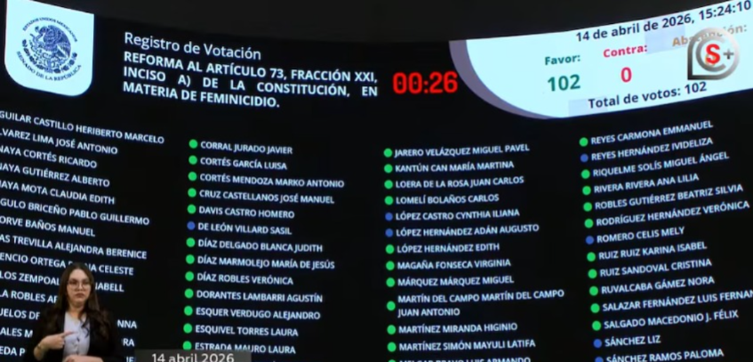 El Senado de la República dio luz verde a una reforma constitucional que abre la puerta a la creación de la primera Ley General de Feminicidio en México, al aprobarla con 109 votos a favor y sin oposición en el pleno.