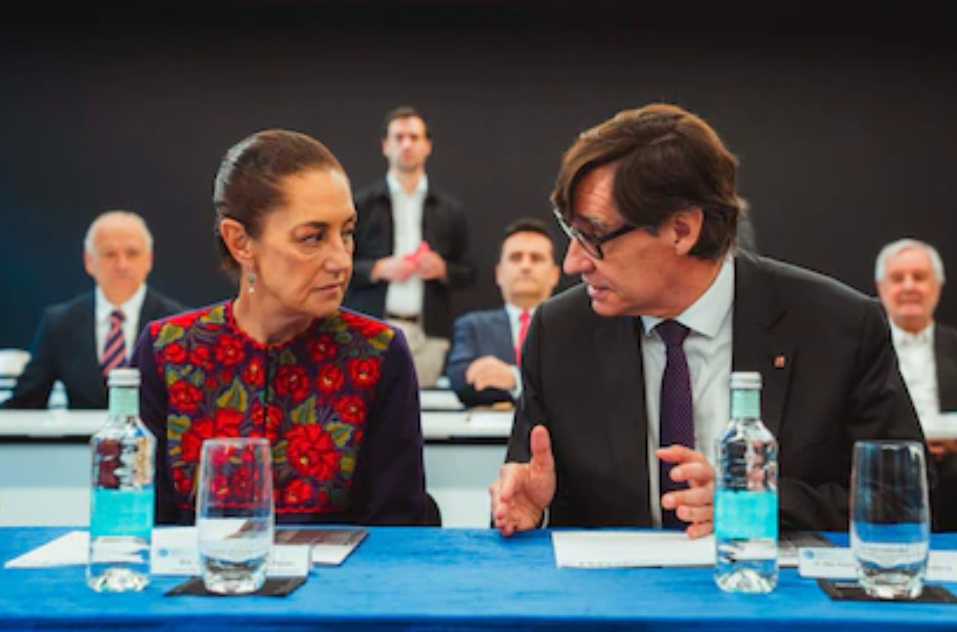 Claudia Sheinbaum sostiene encuentro con Salvador Illa en el Barcelona Supercomputing Center luego de participar en la IV Cumbre en Defensa de la Democracia