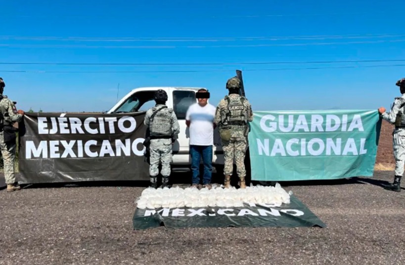 En Sonora, la Guardia Nacional y el Ejército detuvieron a una persona en Navojoa y aseguraron 197 kilos de metanfetamina, un cargador y diecisiete cartuchos, con un valor estimado de 52.3 millones de pesos.