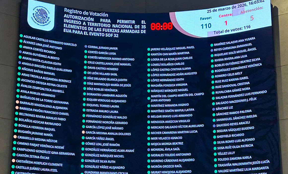 Desde la Comisión de Marina del Senado autorizaron la entrada a territorio nacional de 35 integrantes de las fuerzas armadas de Estados Unidos, quienes participarán en ejercicios de capacitación dirigidos a personal mexicano con miras a la Copa Mundial de la FIFA 2026.