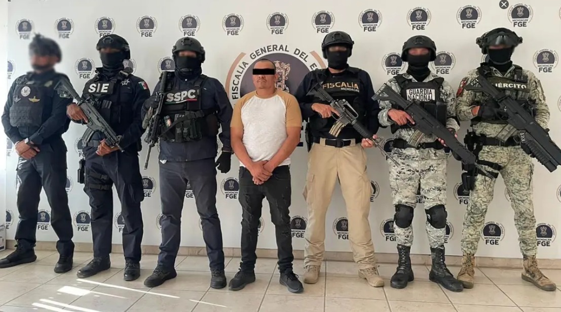 En Uriangato, Guanajuato, personal de Semar, Ejército Mexicano, GN, SSPC, FGR, Fiscalía y Policía Estatal de Michoacán capturaron a un generador de violencia vinculado con homicidios, extorsión, narcomenudeo y robo en cajeros.