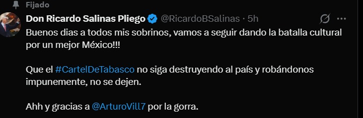 — Don Ricardo Salinas Pliego (@RicardoBSalinas) January 23, 2026