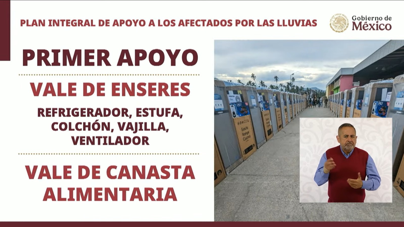 Los apoyos incluyen, además, la entrega de enseres domésticos —como refrigerador, estufa, colchón, vajilla y ventilador— y vales de canasta alimentaria para cubrir necesidades básicas durante la etapa de recuperación. En una segunda fase, se otorgarán 25 mil pesos para viviendas con daños medios y hasta 70 mil pesos para las pérdidas totales.
