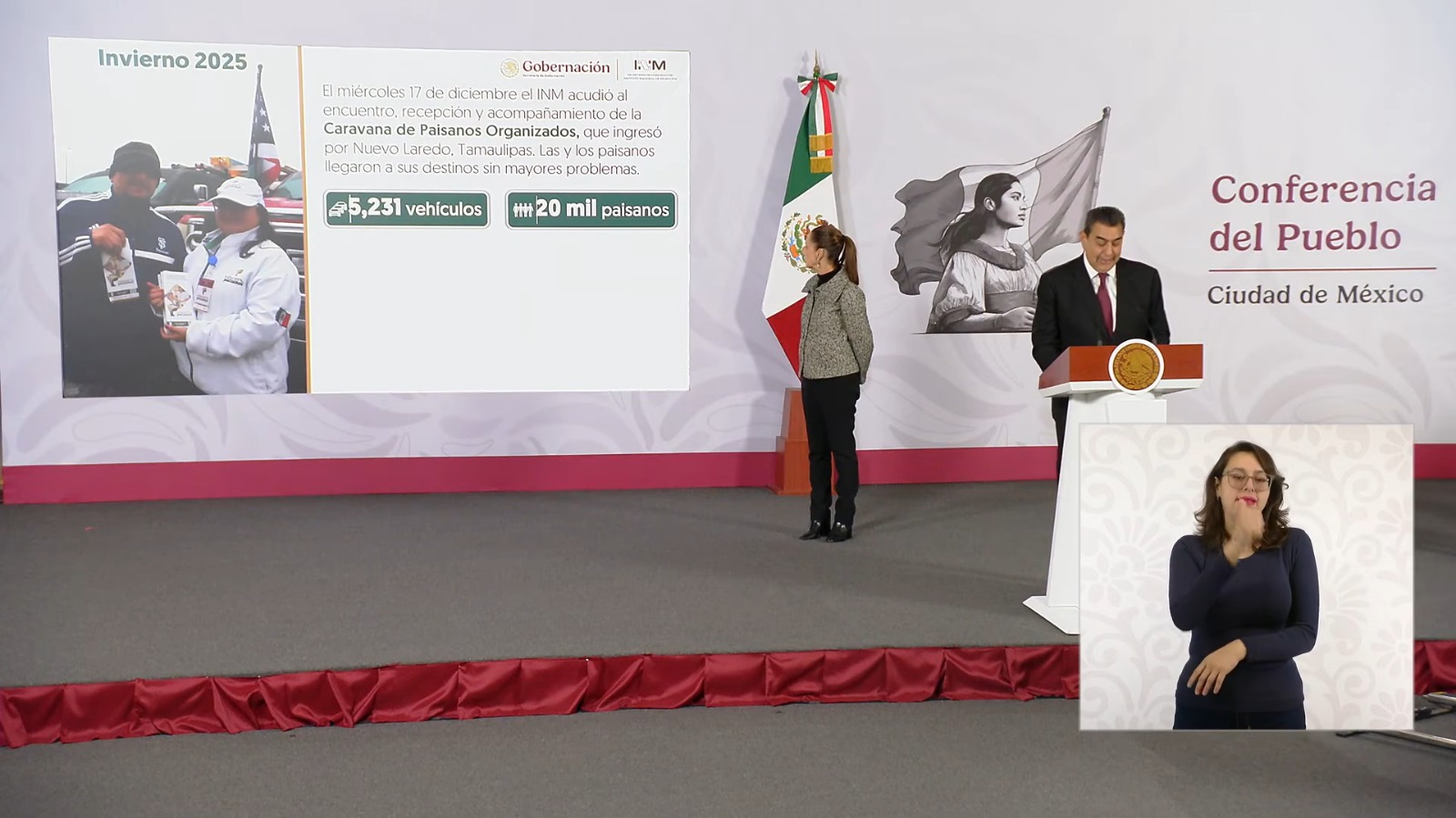 En ese marco, Céspedes Peregrina detalló que el 17 de diciembre se recibió la vigésima edición de la caravana denominada Del orden y la legalidad, integrada por 5 mil 200 vehículos y más de 20 mil personas, organizada por Migrantes Unidos en Caravana y Fuerza Migrante. El contingente partió desde distintos puntos de Estados Unidos para concentrarse en Laredo, Texas, y posteriormente ingresar al país con motivo de las fiestas de fin de año.