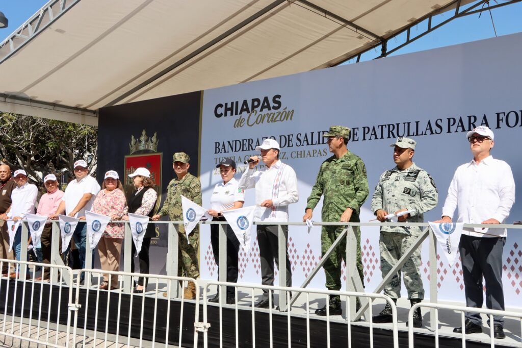 Desde la explanada de la Plaza Central, en el municipio de Tuxtla Gutiérrez, el gobernador Rutilio Escandón Cadenas dio el banderazo de salida de 213 nuevas patrullas que se desplegarán en diferentes municipios de Chiapas, como parte de las acciones para fortalecer la seguridad, de cara a los desafíos que se proyectan en la vida diaria, en cuanto a la protección a la vida, integridad y patrimonio de la población.