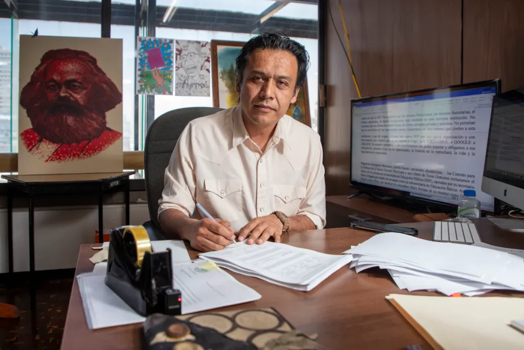 Este martes 17 de febrero, Marx Arriaga Navarro abandonó las oficinas de la Dirección General de Materiales Educativos de la Secretaría de Educación Pública (SEP), luego de permanecer encerrado en ellas por más de 100 horas. Su salida se concretó tras recibir y firmar el documento oficial que le notificaba formalmente su separación del cargo, requisito que él mismo exigió para retirarse.