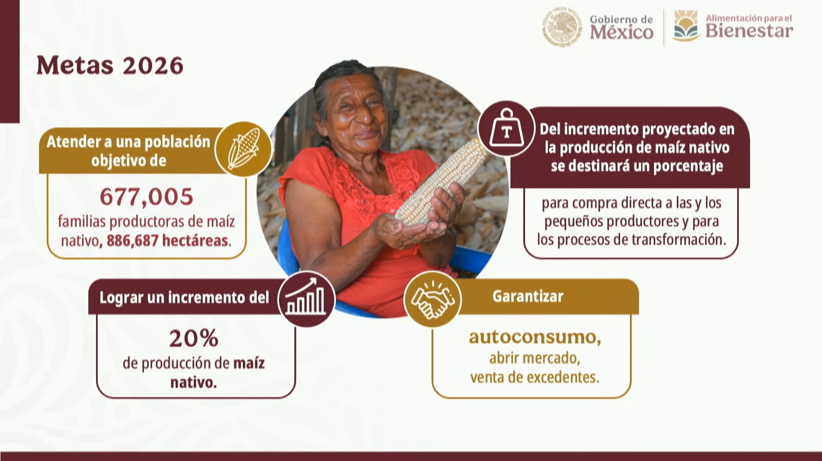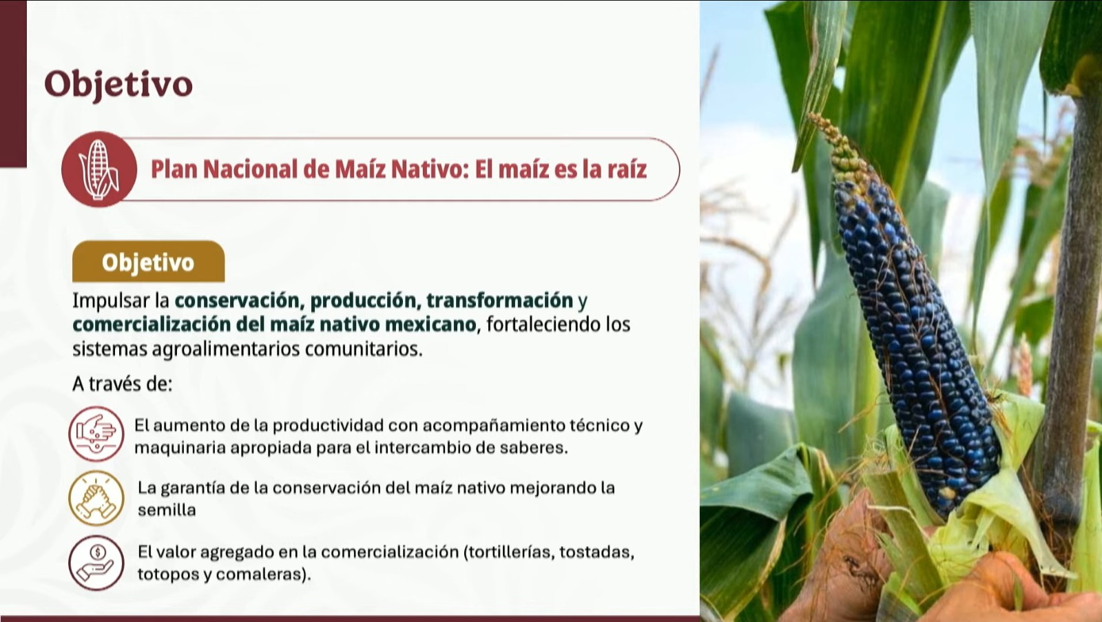 “El maíz nativo es la raíz de México. Queremos que las familias sigan sembrándolo, que se alimenten de su milpa y que el excedente tenga valor agregado”, afirmó.