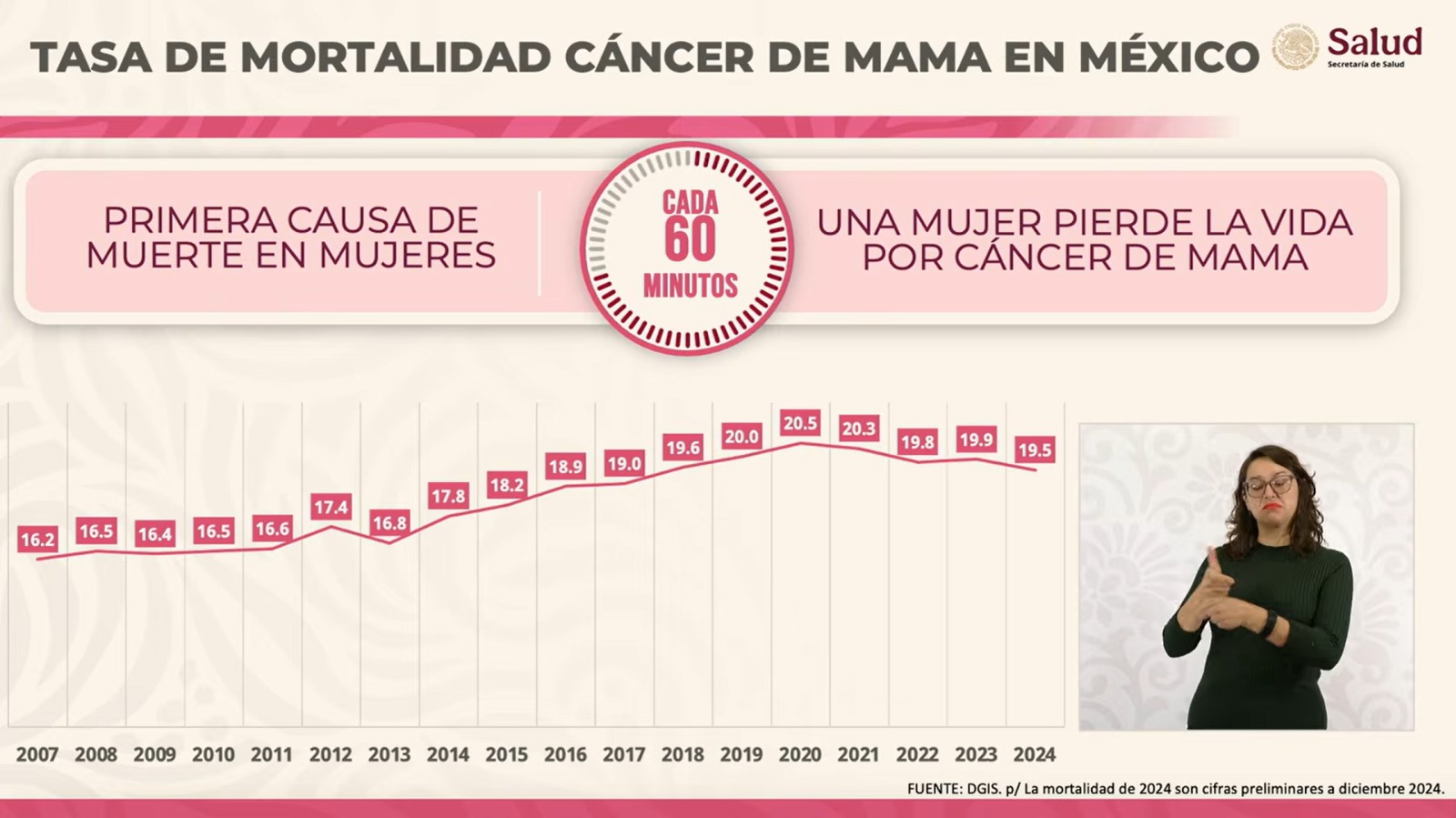 El secretario de Salud, David Kershenobich, explicó que el cáncer de mama es la primera causa de muerte en mujeres y que cada hora fallece una mexicana a causa de este padecimiento. Por ello, el nuevo modelo contempla cinco ejes de acción enfocados en educación, prevención de factores de riesgo, detección oportuna, diagnóstico especializado y tratamiento integral.