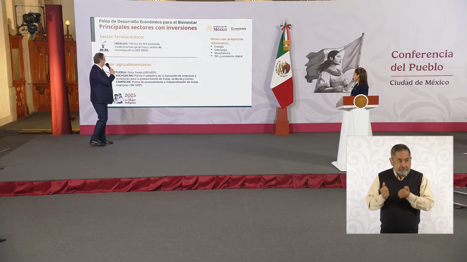 En otros sectores, subrayó inversiones en energía, manufactura y economía digital que ya se encuentran confirmadas. En el rubro farmacéutico, señaló la instalación en Hidalgo de una planta de producción de ingredientes farmacéuticos activos, con una inversión de 2 mil millones de dólares, como parte de la estrategia para avanzar hacia la autosuficiencia en medicamentos y fortalecer la competitividad del país.