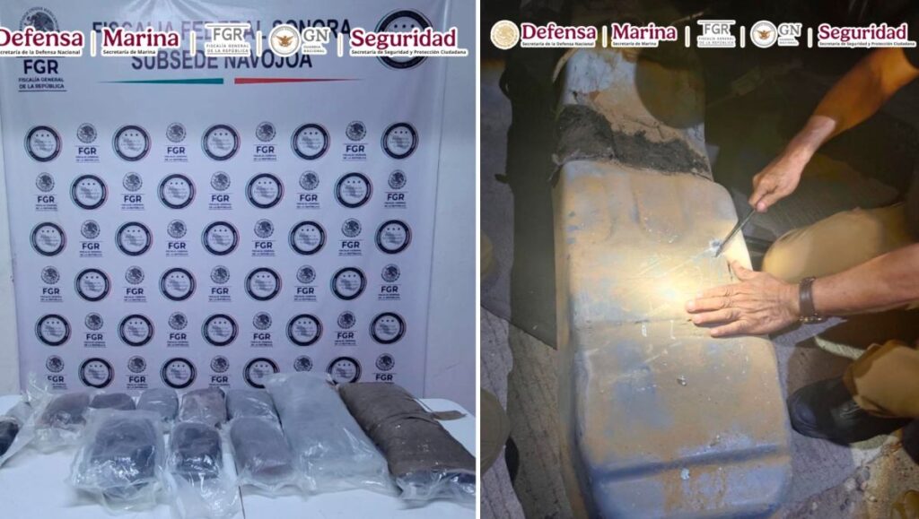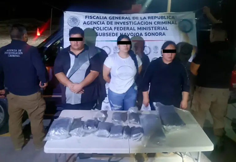 En una operación conjunta, fuerzas federales lograron la detención de tres personas, dos mujeres y un hombre, que transportaban aproximadamente 30 kilos de heroína ocultos en una camioneta. La droga fue encontrada en un compartimento secreto dentro del tanque de gasolina del vehículo, en la carretera internacional México 15, a la altura de Huatabampo, Sonora.