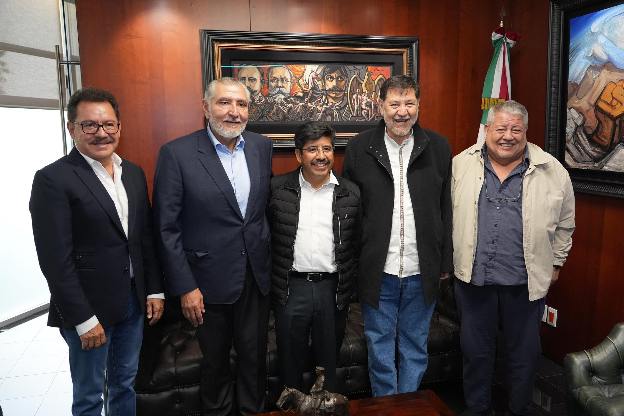 Durante el encuentro, Aguilar fue recibido por los morenistas Adán Augusto López Hernández, presidente de la Junta de Coordinación Política, y Gerardo Fernández Noroña, titular de la Mesa Directiva, así como por el senador Manuel Huerta Ladrón de Guevara, de Veracruz.
