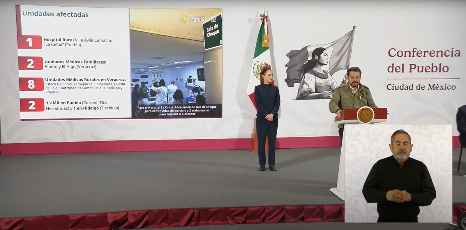 Durante la conferencia La Mañanera del Pueblo, el titular del IMSS, Zoé Robledo, explicó que la prioridad ha sido garantizar la atención médica en las comunidades afectadas. Detalló que el Hospital Rural de La Ceiba, en la junta auxiliar de Villa Ávila Camacho, municipio de Xicotepec, Puebla, sufrió los mayores daños, aunque actualmente ya brinda servicios de urgencias y obstetricia gracias al apoyo de una unidad médica móvil, donde incluso se han atendido partos.