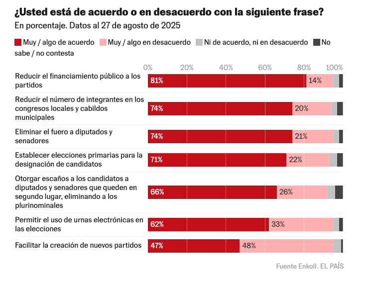 El siguiente gran frente del Gobierno es la Reforma Electoral, que busca eliminar plurinominales, reducir el financiamiento de partidos y abrir paso a las urnas electrónicas. El respaldo ciudadano es contundente: