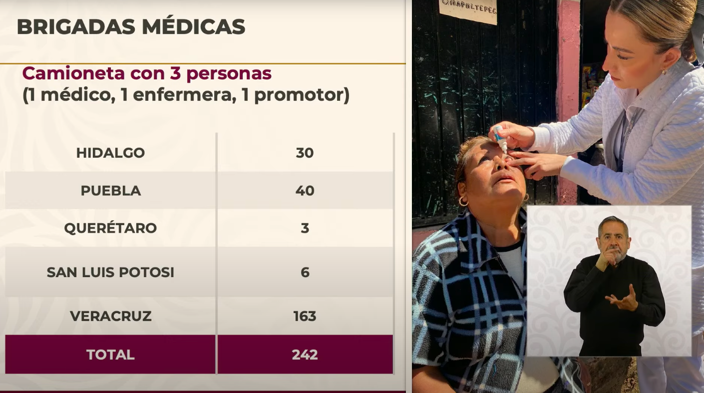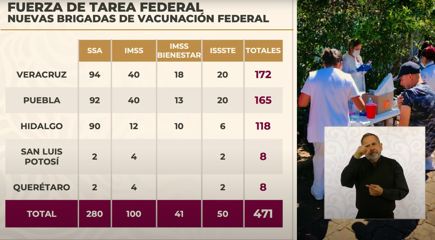 En total, 8 mil trabajadores del sector salud, 46 unidades médicas móviles y más de 850 brigadas médicas, de vacunación y de vectores recorren Hidalgo, Puebla, Querétaro, San Luis Potosí y Veracruz.