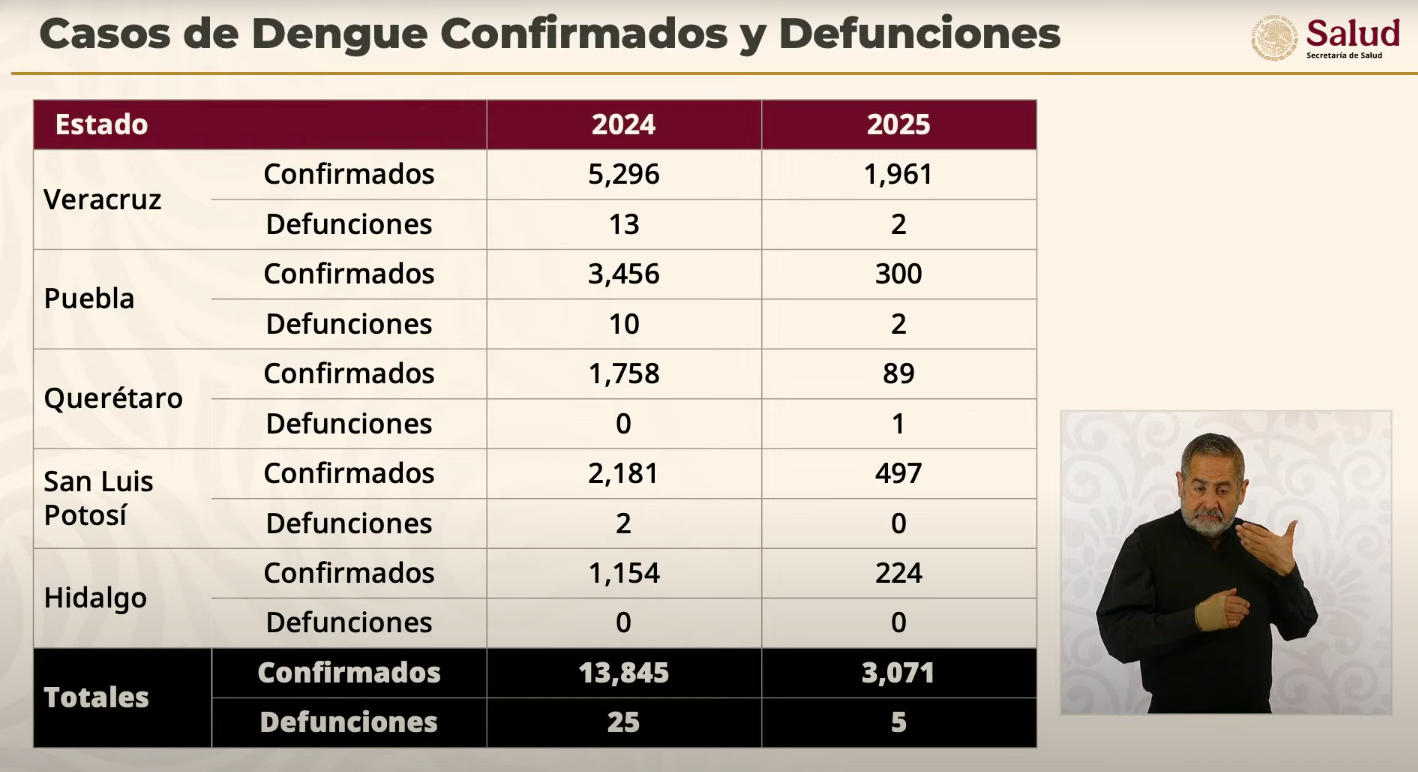 Hasta el momento, se contabilizan 3 mil 71 casos confirmados de dengue en 2025, una reducción considerable frente a los 13 mil 845 registrados en 2024.