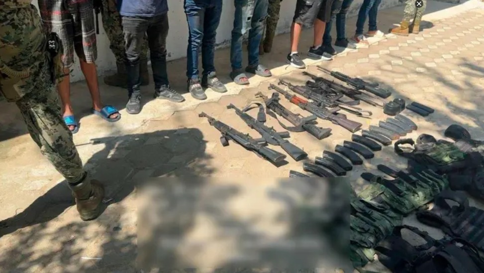 En Baja California Sur, en el municipio de Mulegé, elementos de la Secretaría de Marina (Semar) y de la Policía Estatal detuvieron a una persona a la que se le aseguraron cuatro armas largas, veintinueve cargadores, cartuchos, tres chalecos tácticos, dos radios de comunicación, tres cargadores para radios, uniformes tácticos y un vehículo.
