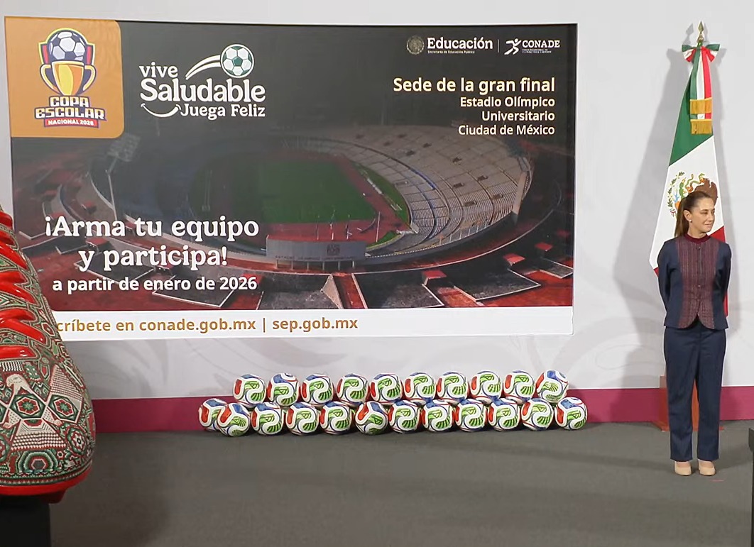 El titular de la Secretaría de Educación Pública (SEP), Mario Delgado, anunció la creación de la Copa Escolar Nacional Vive Saludable, Juega Feliz, un torneo que comenzará en 2026 y que, a partir de entonces, se realizará de manera anual. La iniciativa buscará que niñas, niños y jóvenes de primaria, secundaria, preparatoria y universidad participen en una competencia nacional vinculada al espíritu deportivo que acompañará al Mundial de futbol.
