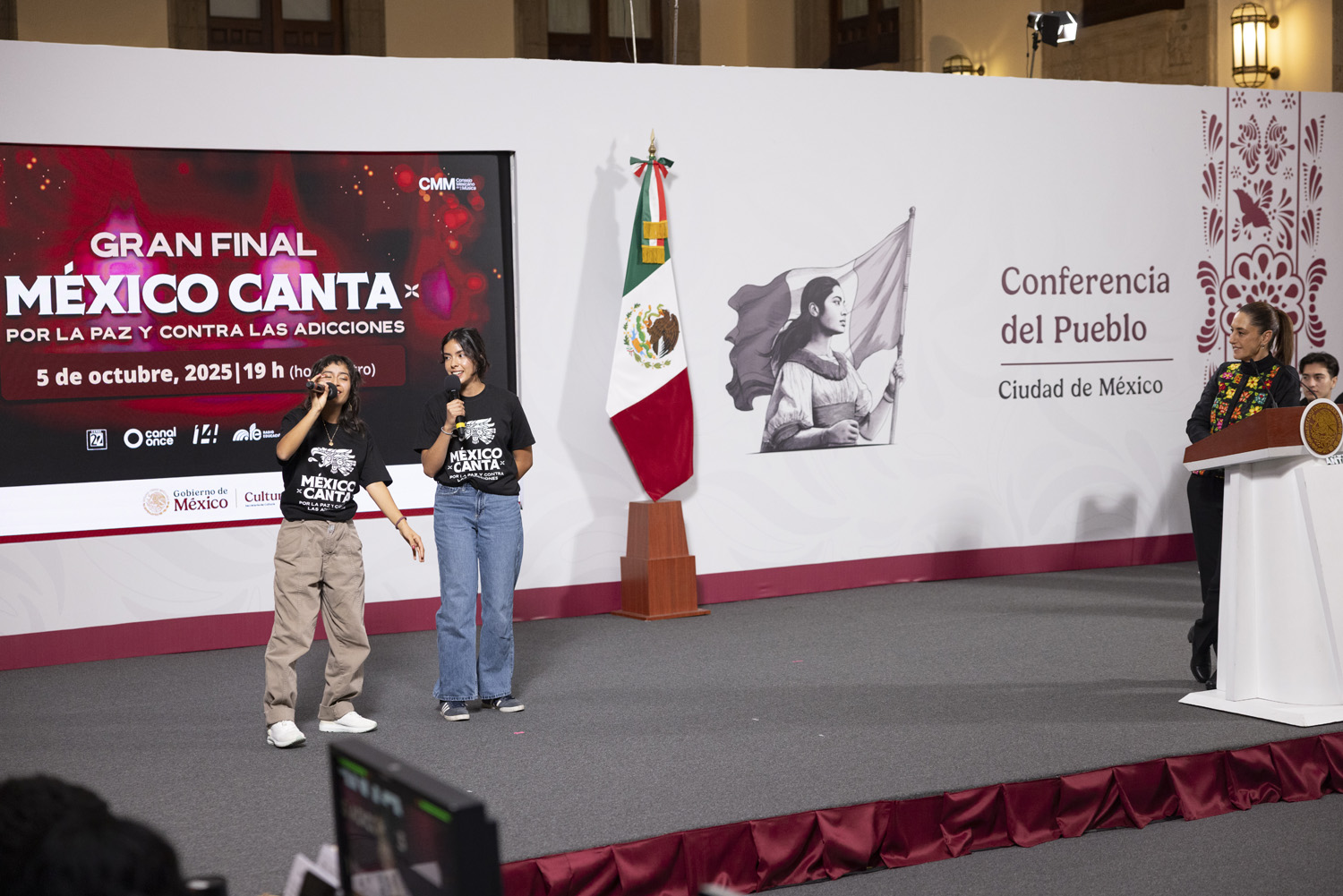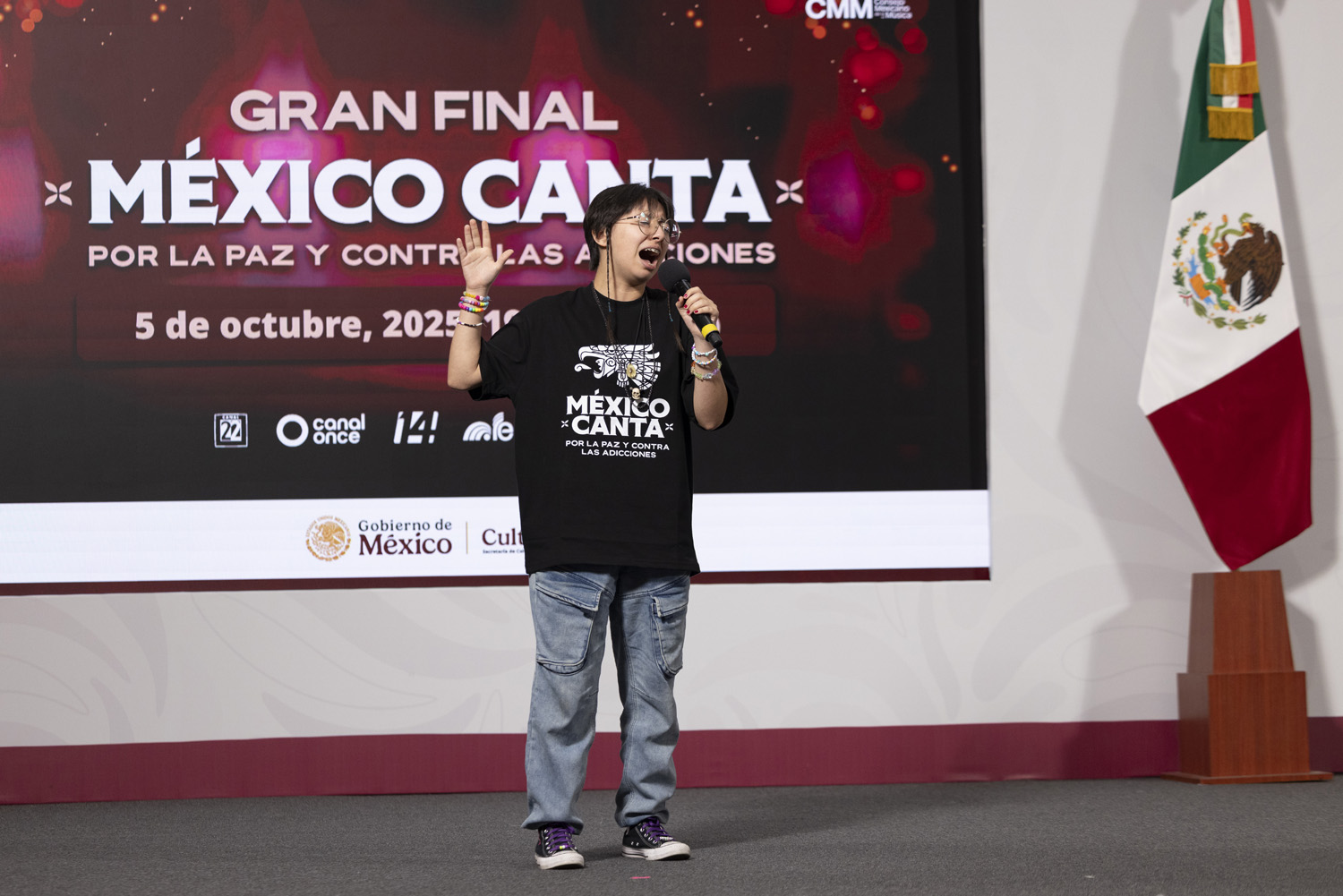 Durante la Mañanera del Pueblo de este viernes 3 de octubre, la funcionaria presentó a los finalistas, quienes interpretaron las piezas que los llevaron a la última fase y se pronunciaron en favor de migrantes y mujeres.