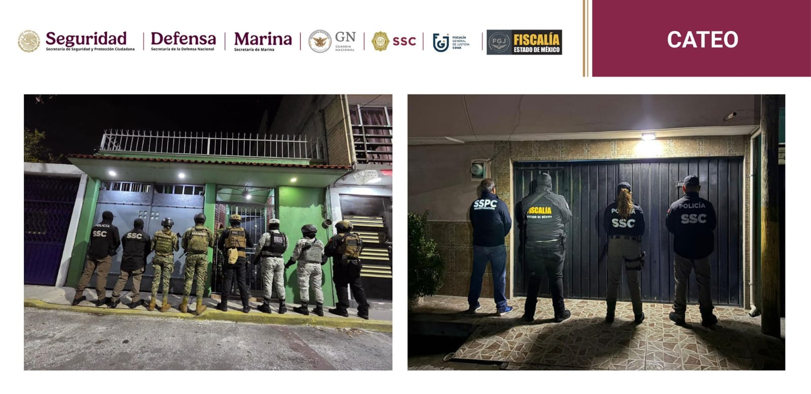 La acción fue posible gracias a la coordinación del Gabinete de Seguridad del Gobierno de México, con la participación de la SSC y la Fiscalía General de Justicia de la CDMX, la Secretaría de Seguridad y Protección Ciudadana (SSPC), la Guardia Nacional, la Marina, la Defensa Nacional, la Fiscalía General de la República y la Fiscalía mexiquense.