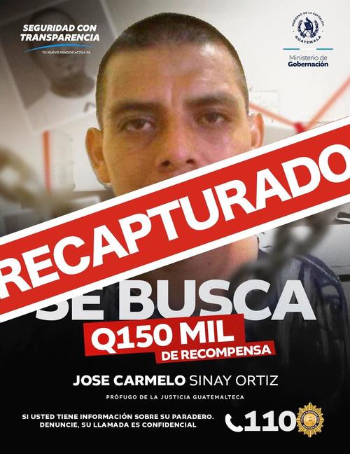 Con esta detención, el Ministerio de Gobernación suma ocho reclusos localizados, mientras que otros 12 permanecen prófugos de la justicia, lo que mantiene activos los operativos de búsqueda en todo el territorio guatemalteco.