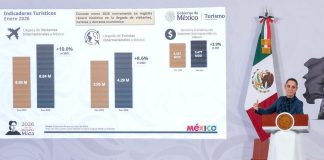 A unos días de que México se prepare para recibir al mundo con el Mundial de Futbol 2026, la presidenta Claudia Sheinbaum Pardo lanzó un mensaje directo: los turistas internacionales pueden viajar al país con seguridad. Desde Palacio Nacional, la mandataria subrayó que existen condiciones para recibir a visitantes extranjeros, al tiempo que destacó el … Sigue leyendo “Pueden venir de manera segura”: Sheinbaum garantiza turismo en México rumbo al Mundial 2026 y destaca crecimiento de visitantes