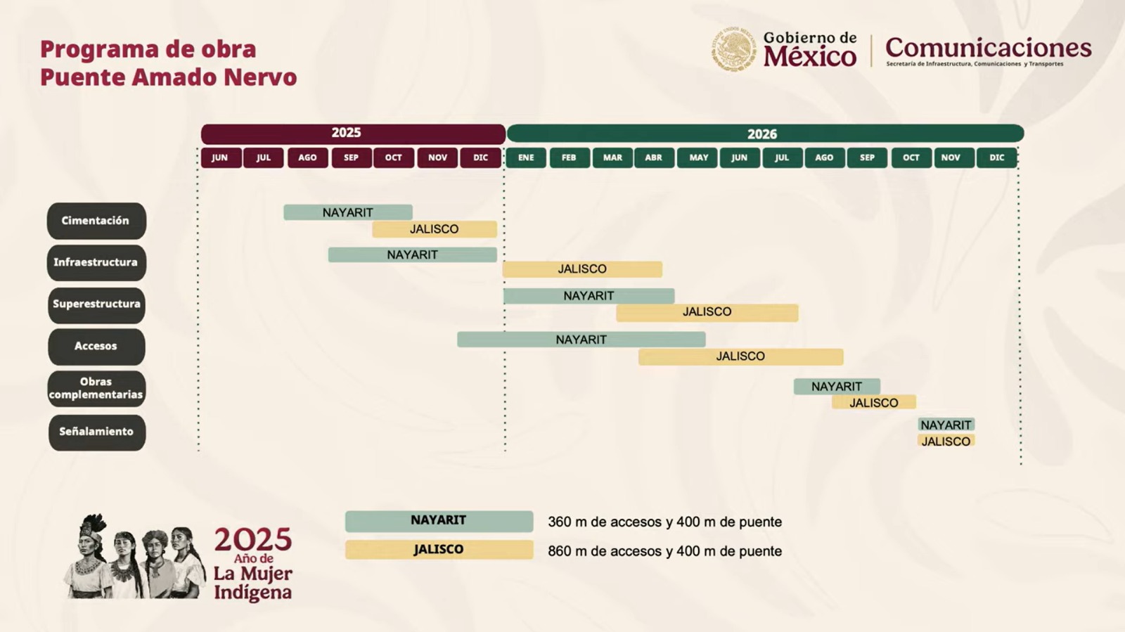“Estamos iniciando este año con 200 millones de pesos y el puente estará concluyéndose en noviembre de 2026”, explicó.