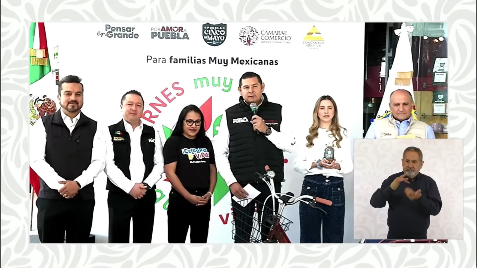 El mandatario estuvo acompañado de empresarios y representantes de su gabinete, entre ellos Laura Bernal Bautista, de la empresa La Concordia, y Juan Pablo Cisneros, presidente de la Cámara de Comercio de Puebla, quienes respaldaron el impulso a los productos regionales.