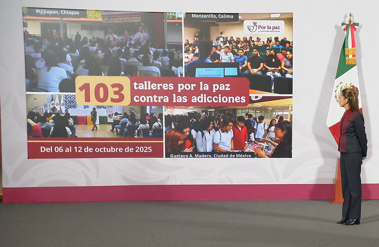 Rodríguez explicó que hasta el momento se han realizado más de 4.4 millones de atenciones en colonias y comunidades identificadas como prioritarias. Tan solo entre el 6 y el 12 de octubre, se llevaron a cabo más de 100 talleres de prevención dirigidos a estudiantes, docentes y padres de familia, con la participación de más de 32 mil personas. En la semana siguiente, jóvenes artistas pintaron 107 murales por la paz en diferentes puntos del país.