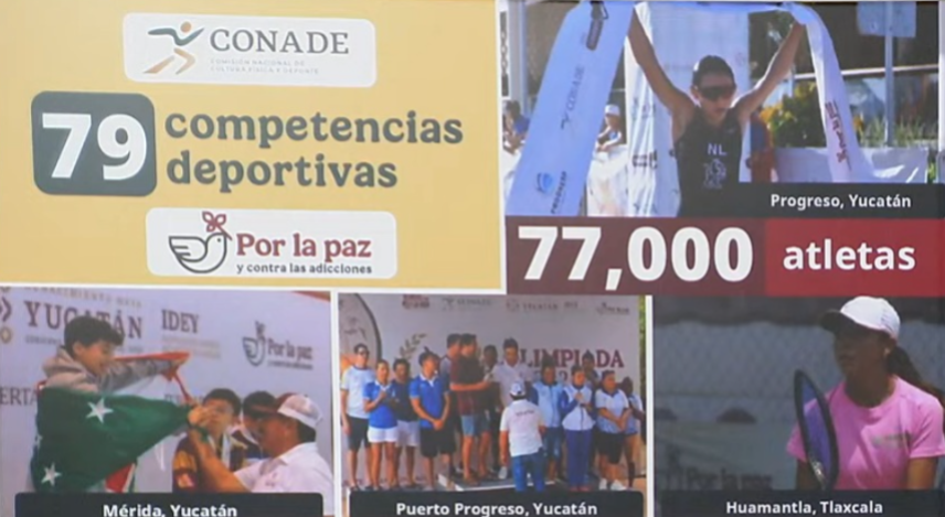 La funcionaria destacó también la organización de 54 ferias de trámites y servicios, donde se otorgaron más de 18 mil atenciones en una semana, además de actividades deportivas y culturales en las que participaron más de un millón y medio de personas. A través del programa Ponte Pila, coordinado por la Conade, se efectuaron 19 mil 311 actividades deportivas y 79 competencias, con la participación de 77 mil atletas.