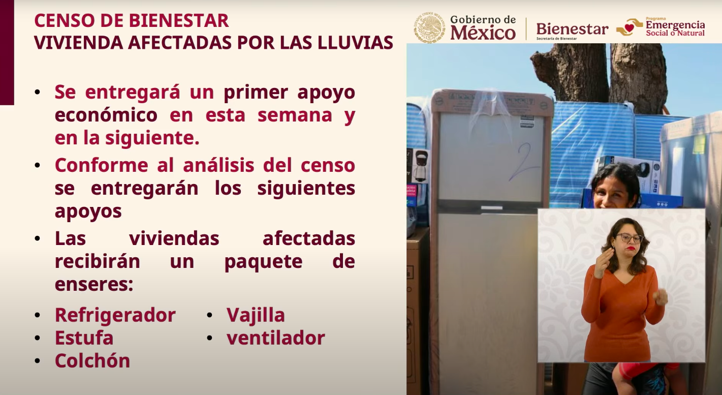 Una vez concluido el análisis del censo, se otorgará un paquete completo de enseres para las viviendas afectadas, que incluirá: