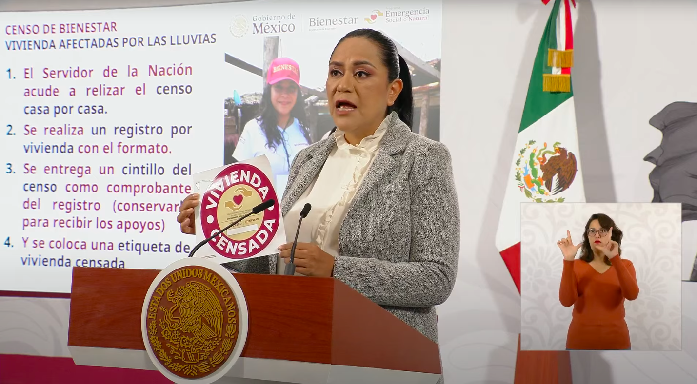Durante la Mañanera del Pueblo, encabezada por la presidenta Claudia Sheinbaum, la titular de la Secretaría de Bienestar, Ariadna Montiel, explicó que el operativo se realizará casa por casa, con el fin de registrar las afectaciones y garantizar que cada familia damnificada reciba apoyo directo.