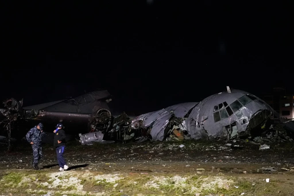 El aeropuerto permanece cerrado para todas las operaciones comerciales y militares mientras continúan los trabajos de peritaje y remoción de escombros.