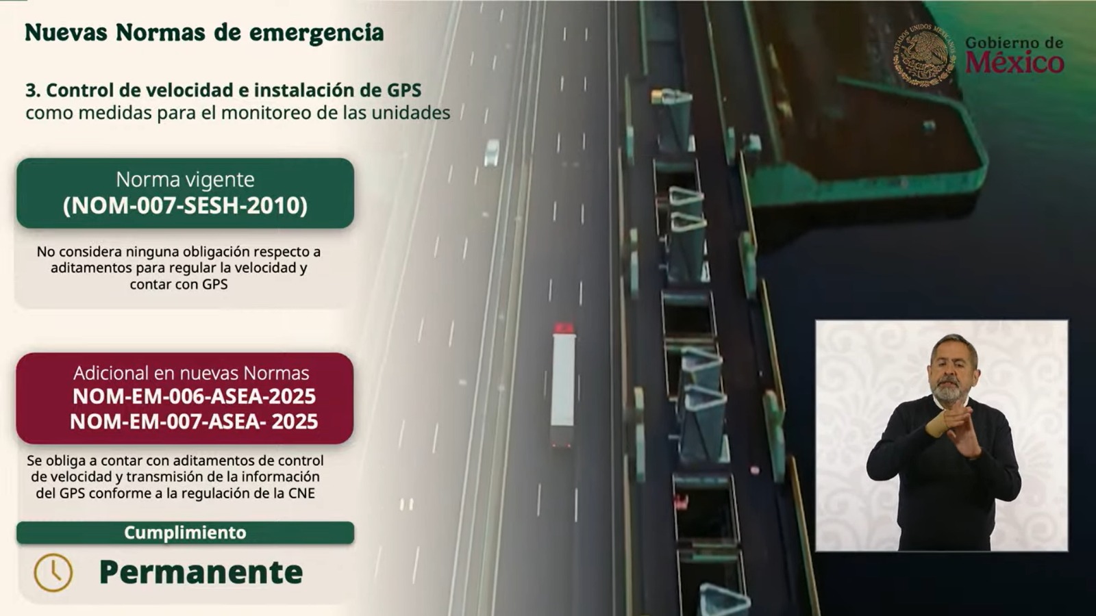 De forma paralela, se implementará un programa de inspecciones conjuntas entre la Secretaría de Infraestructura, Comunicaciones y Transportes, la Comisión Nacional de Energía y la ASEA, con el fin de verificar condiciones mecánicas, permisos y cumplimiento normativo de las unidades.