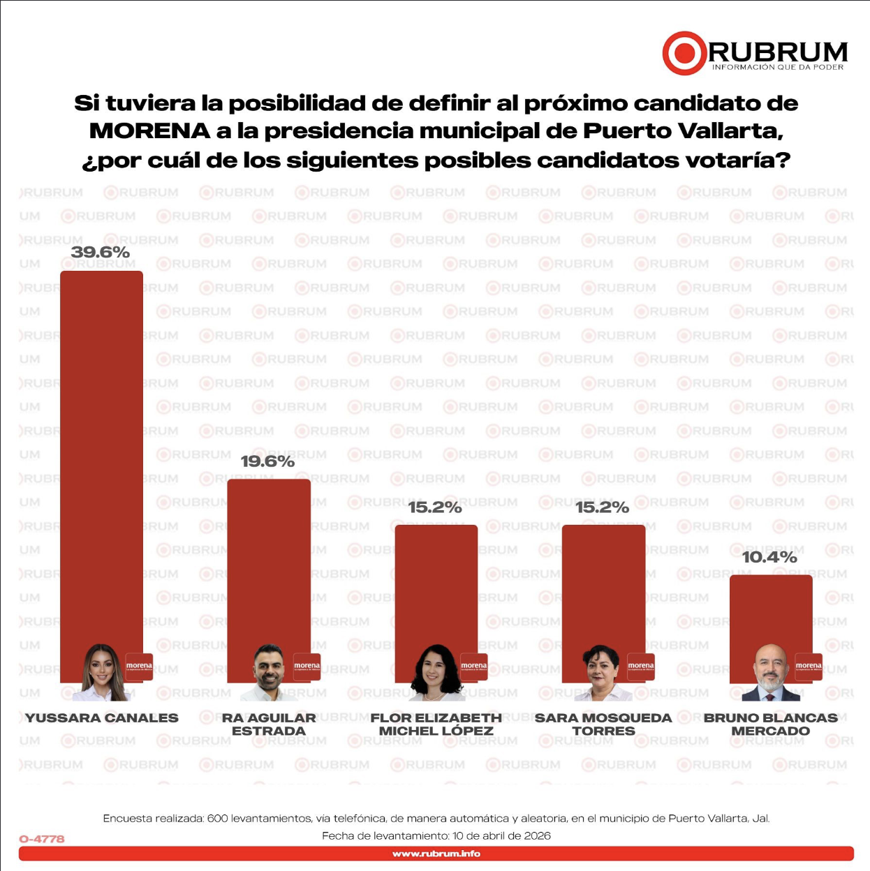 Adicionalmente, uno de los estudios revela que Yussara Canales es la figura política que el electorado vallartense más asocia con Morena en el municipio.