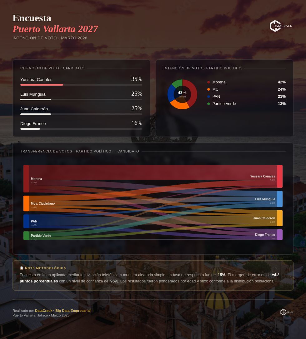 Las encuestas se realizaron durante las últimas semanas y contemplan muestras representativas del municipio. Ambos estudios fueron realizados por empresas demoscópicas con trayectoria en mediciones electorales en Jalisco.